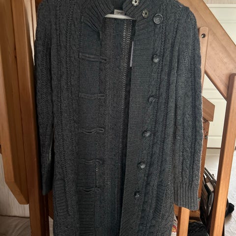 Espritin neuletakki, edessä hakaskiinnitys.