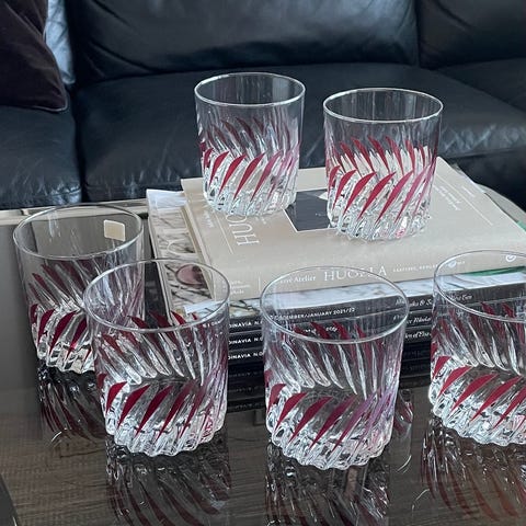 Viisi lasia hintaan 5 €.