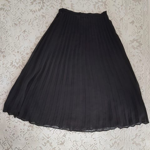Musta pitkä halkiohame, koko 14, vastaa kokoa 40/42. Vy 86 cm ja pituus 108 cm. Lantion ymp 108 cm.