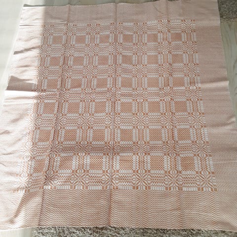 Hieno käyttämätön pellavaliina .Pohjaväri valkoinen. Keltaiset raidat ja ornamenti ja kiiltävät painettut kukkakuviot.Lisäkuvia tarvittaessa. Kulkee Espoo-Lahti-Heinola-Mikkeli-Pieksämäki omien menojen mukaan.