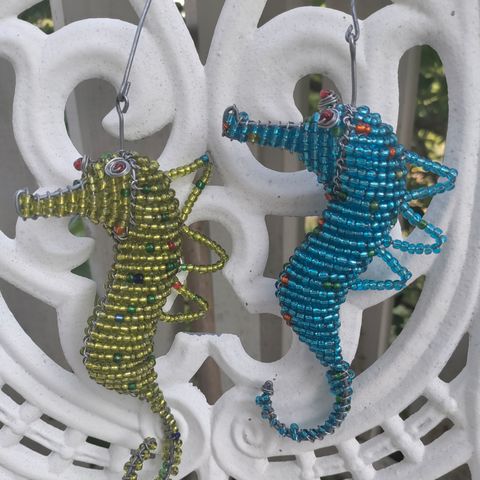 Tehty taitavasti rautalangasta ja pienistä helmistä käsityönä. Ontto sisältä.