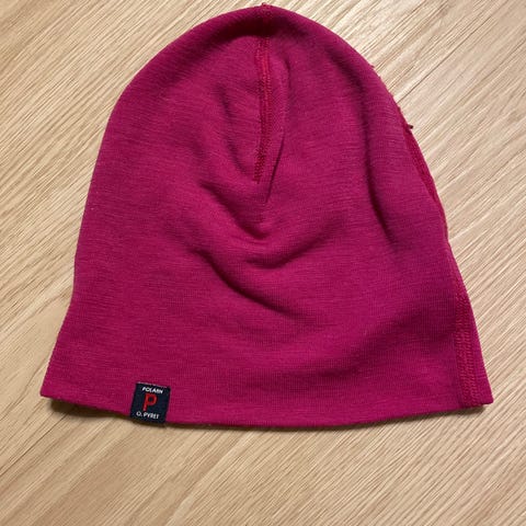 Polarn o. Pyret laadukas punainen merinovilla-fleece hattu talven ja tuulisten välikausi päivien ulkoiluihin. Tässä on windstop-kalvo välissä, joten pitää tuulen loitolla. Hopeinen ommel heijastaa pimeällä (ei ole heijastin).