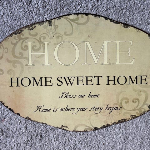 Kuvannäköinen seinälle kiinnitettävä peltikyltti home sweet home, ei ole ollut käytössä. Nouto tai posti. En tee toridiiliä.