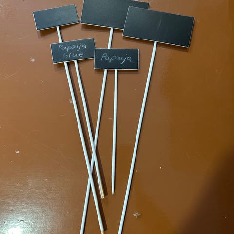 Kaunis keraaminen kyltti upotettavaksi multaan herneiden kaveriksi!