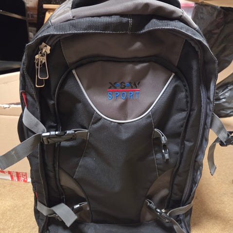 Pehmeä, sininen matkalaukku. Päällys ehkä nahkaa? Ollut säilytyskäytössä. Näkyvissä ainakin pari painaumaa, alapuolella pieni rikko (kuva viimeisenä) sekä jostain kulmasta joku käynyt maistelemassa hieman.
