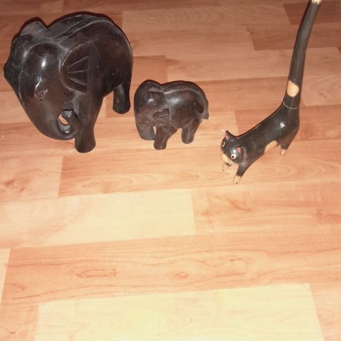 Puisia leluja / somisteita . Norsut ja kello