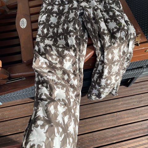 Turkoosit hyväkuntoiset VARP-lasketteluhousut koko S. Vetoketjut ookoo, toisessa lahkeessa pieni palkeenkieli.
