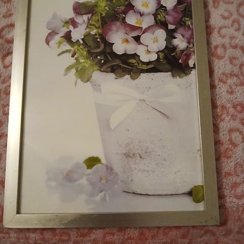 Kukka maalaus kauniissa kehyksessä, kehyksen ulko mitta 14x18 cm, seinä kiinnitys ja tausta tuki, ehjä.
