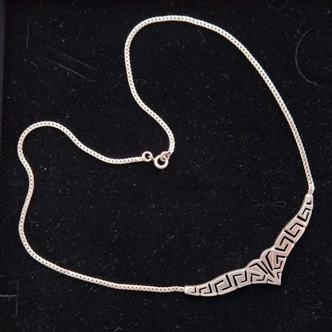 Myydään kaunis renkaan malliseksi muotoiltu hopeinen kaulakoru. Pituus noin 42 cm. Leimat 925 hopea, GALA. Kunto hyvä.
