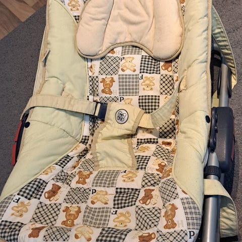 Keinuttava, tärisevä ja musiikkia soittava Fisher-Price sitteri kahdella päällisellä joista alkuperäistä ilmeisesti yritetty silittää nurjalta puolelta ja siksi sulanut/revennyt (huom. 2.kuva), ei vaikuta käyttöön. Harmaa päällinen itse ommeltu. Sisältää patterit. Eläintalous! Vain nouto!