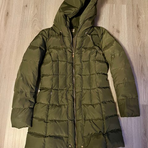 Liukkaasta kankaasta tehty ulkoilutakki, koko M/L.