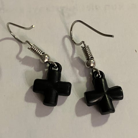 Uudet, nikkelittömät, hopean väriset Risti korvakorut. Kork 4,5cm. Hinta sis postituksen. Kouvola