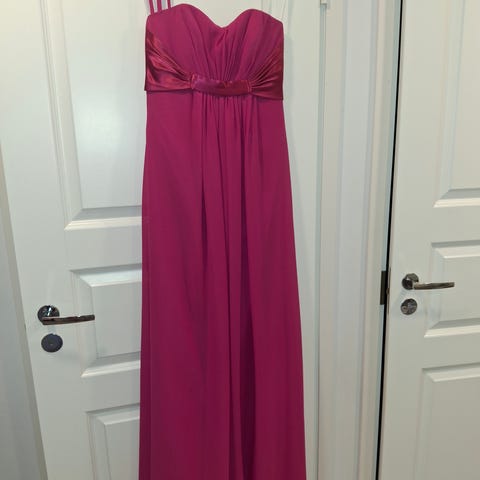 Myynnissä upea korallinvärinen iltapuku! Yläosa korsettimainen ja hyvin tukeva sekä push-up efektin antava (luut), helma kauniisti laskeutuva rypytetty. Takana nyöritykset.