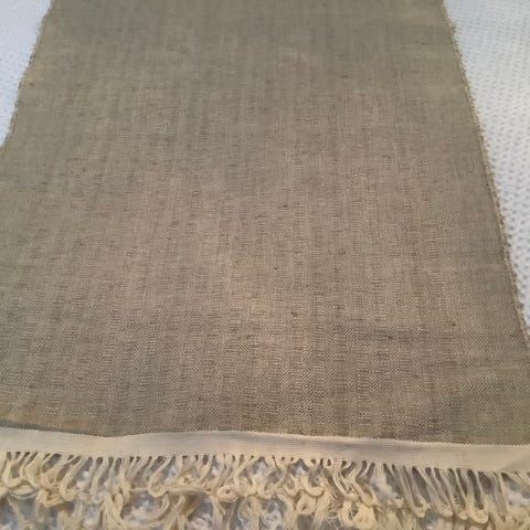 "Tikkuista kangasta" Ruskea sävyinen Kangas, jossa puun kuvia, leveys 142 cm, pituus 243 cm, hyvä kuntoinen.