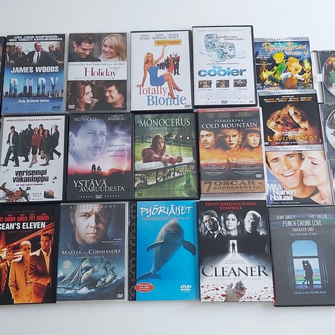 Alhaalta vasemmalta: Spy Game, CSI:Crime scene investigation, Antikiller, A live Song Ford Bobby Long Myyty!!!!, I sanningens spår, Shooter, 2 Guns, Blues State, Diktaattori, Norbit Eddie Murphy, Rakkautta vain Myyty!!! Pets, Arthur, Svinalängorna, Hartland 3 kpl.