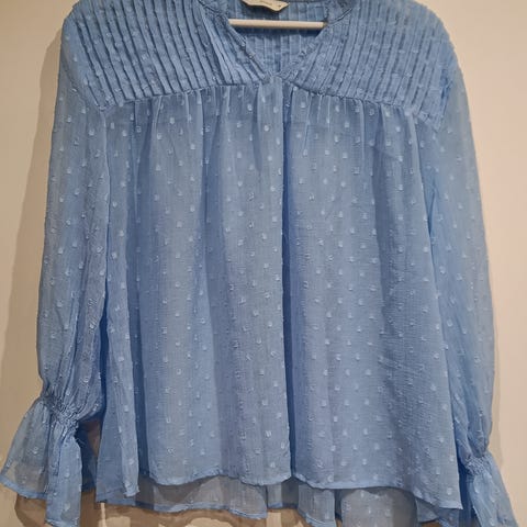 Kauniin tummansininen pilkullinen paitapusero koossa M. 95% viskoosi, 5% Elastaani. Erittäin hyvä kunto. Käytetty ja pesty pari kertaa, jäi pieneksi minulle. Pituus 47 cm.