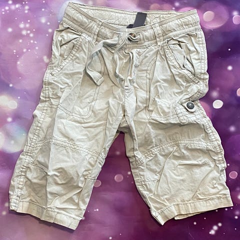 Myytävänä kuvanmukaiset Prenatal -merkkinen vaaleat lasten housut, kokoa 107/113, 4/5.