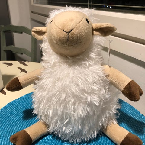 Sisti vähän käytetty, mutta pitää oven hyvin auki/raollaan. Nenän päästä kulunut. Turkoosi söpö koira, joka painaa vähän vajaa 500 g ja on p. 18 cm x l. 12 cm.