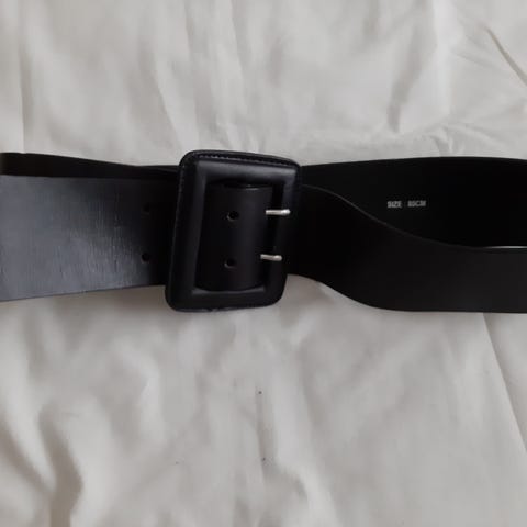 Musta korusolkinen vyö. Nahkavyön pituus 116 cm.