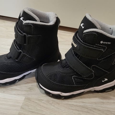 Myydään Viking talvikengät koko 25. Pohjallisen mitta 16,7cm. Meille uutena ostettu. Meillä ollut käytössä siistimpänä kenkänä, vähälle käytölle jäi. Sisävuoret ehjät, tarrat toimii. Muutoin kuin uudet, mutta kärkien heijastavassa pinnassa hieman pinnallista kulumaa.