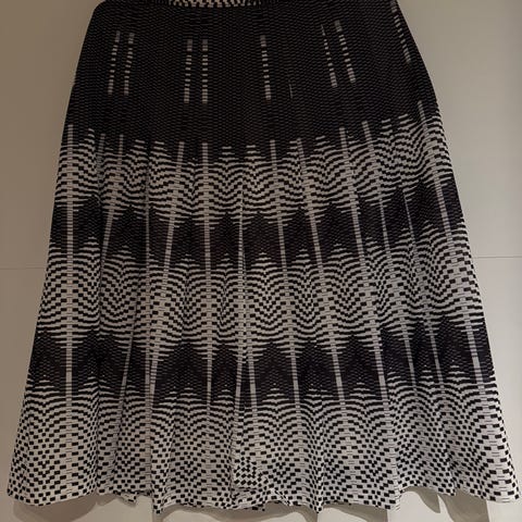 Samettinen minihame vuodelta 1979. Väri viininpunainen/vaaleanpunainen. Koko 38C. Sivussa vetoketju. Hameen pituus n. 48 cm. Vyötärönympärys n. 71 cm nappi suljettuna. Kunto erinomainen, on aivan ehjä.
