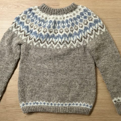Tummanruskea norjalainen villapaita. kainalo-kainalo 46cm, olka-helma 68cm. letlopi 100% islantilainen villa ja oranssiosuus icelandic wool.