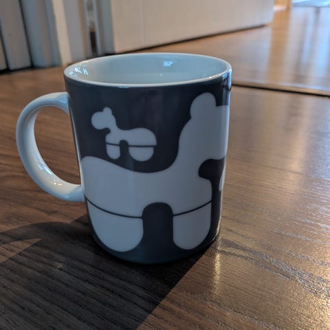 Muuten ehjä ja hyväkuntoinen tarrallinen uusi muki.