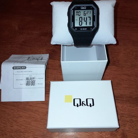 Lähes käyttämätön Q&Q kello. Ruostumatonta terästä,vesitiivis. Ranneosaan lisäpalat jos kokoa tarvii säätää. Alkuperäinen laatikko mukaan