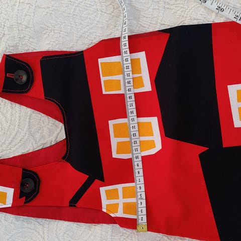 Hihan pituus 41 cm, kainalo-kainalo 47 ja pituus 78 olkasaumasta helmaan.