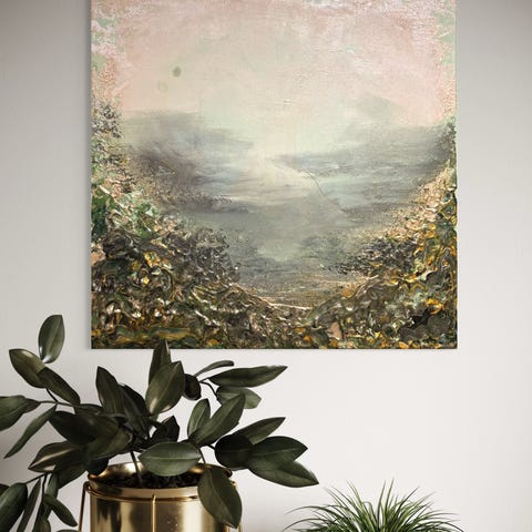 Canvaspohjille itsemaalattuja akryylitauluja, ripustusvalmiita.