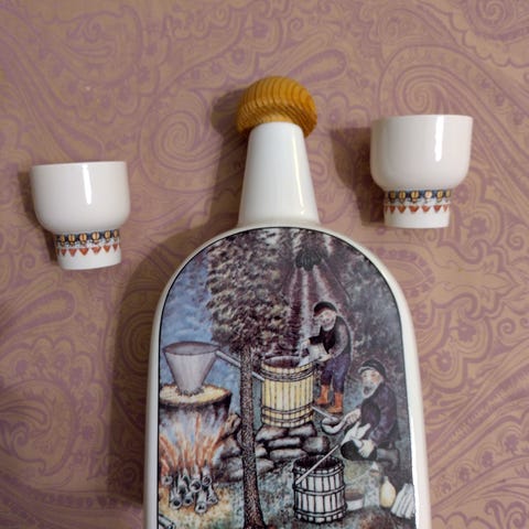 Arabia pontikankeittäjät korkillinen pullo ja 2 lasia.