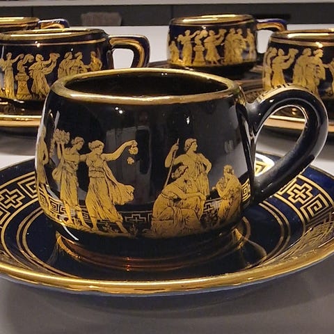 4 kpl kuvanmukaisia esim Oppipojassa Rovaniemellä käytettyja aamiaispöytäkamppeita. Uudenveroisia eikä käytön jälkiä. Kahvikuppi vetää n 1,4 dl