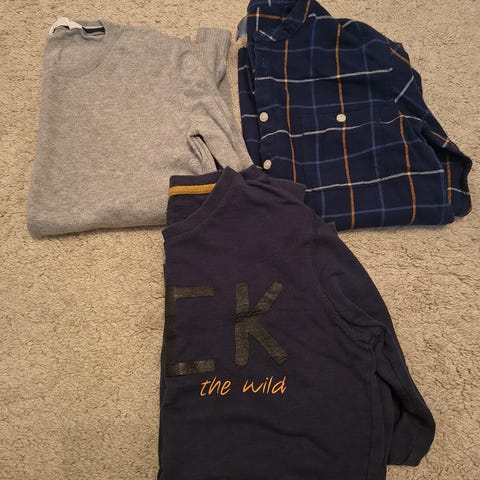 Myydään paketti vaatteita, t-paitoja, pitkähihaisia sekä talvitakki, koot 158-164. Ehjiä, hyvä käytetty kunto. Silitys jää ostajalle.