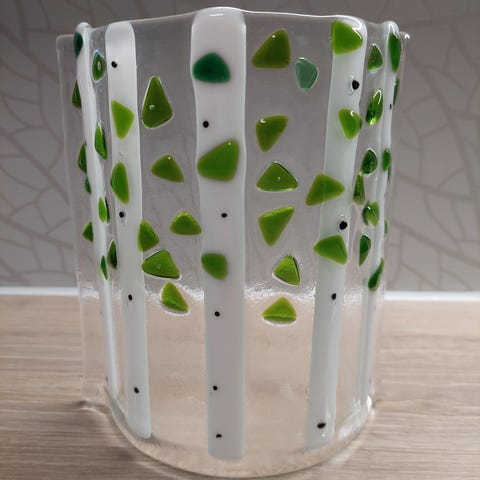 Lasin korkeus noin 13cm. Sopii hyvin esim. Led-tuikulle. Tai lyhyille leikkokukille.