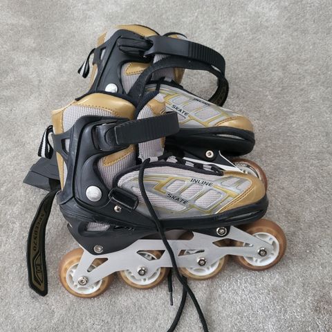 Myydään hyväkuntoiset lasten säädettävät rullaluistimet koko 32-35. Lisäksi suojasetti.