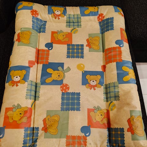 Laadukas, muovipinnoitetusta puuvillakankaasta valmistettu hoitoalusta, kuin uusi. Jäänyt todella vähälle käytölle.