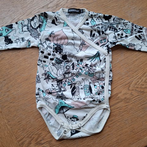 Myydään Aarrelabelin Aarrekid malliston body koossa 60. Joustava, pehmeä kangas. Kaunis metsäinen kuvio.