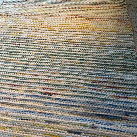 Pituus 155cm, leveys 83cm. Kudottu kolmella kävyllä. Napakka ja siisti matto. Uusi ja käyttämätön.