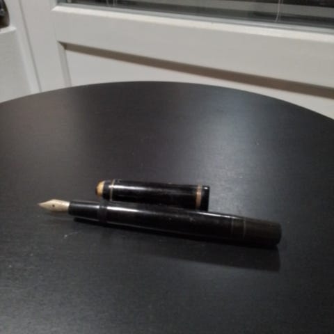 RJR muste täytekynä alkuperäisessä muovikotelossa, terässä lukee iridium point Germany