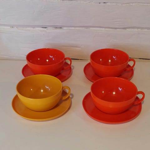 Gefle Malta tee-/kahvikupit 1970-luvulta, 6 kpl. Lautasissa hieman krakeloitumaa.