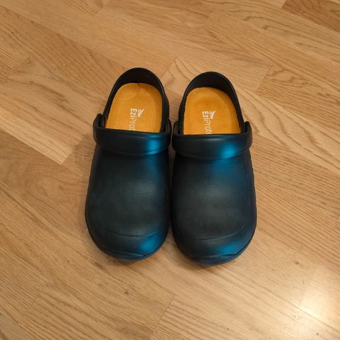 Myydään hyväkuntoiset mustat sandaalimaiset naisten työkengät. Pohjallinen helposti irrotettavissa. Tarrakiinnityksellä. Muutaman kerran käytetyt