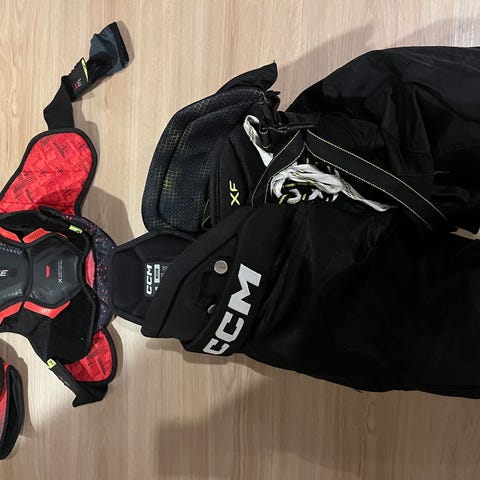 Myydään lasten jääkiekko housut ja rintapanssari. Koko junior. Koiratalous.