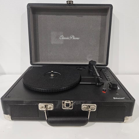 Telefunken electrophon 105 SV kannettava levysoitin. Kuoret tosi hienossa kunnossa. Hieno tällaisenaankin. Virtavalo syttyy, hetken päästä alkaa kuulumaan 50Hz pörinä kaiuttimesta. Äänirasiasta kiinnike halki. En saanut pyörimään. Tästä harrastajalle tai koriste-esineeksi. Tarjoa.