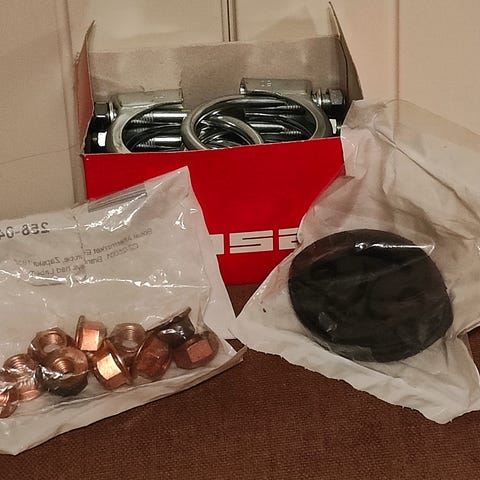 Projektista yli jääneitä ruostumattomia pakoputken osia.