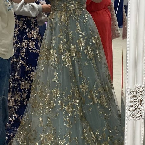 Hyväkuntoinen, kerran käytetty. Korsetilla saa kiristettyä joten koko s/m. Alta beige, päällä turkoosin sinivihreää tylliä. Ei tarvitse vannehametta alle. Olkaimet lisätty jälkikäteen, ne on helppo poistaa jos haluaa olkaimettoman mekon.