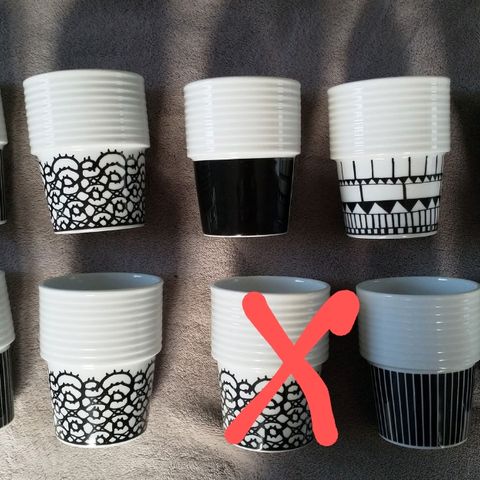 Myydään Rörstrandin mustavalkoiset Filippa K -mukit, 2kpl. Mukit pinottavia. Myydään yhdessä, hinta yhteensä 20€. Nouto Kalliosta.