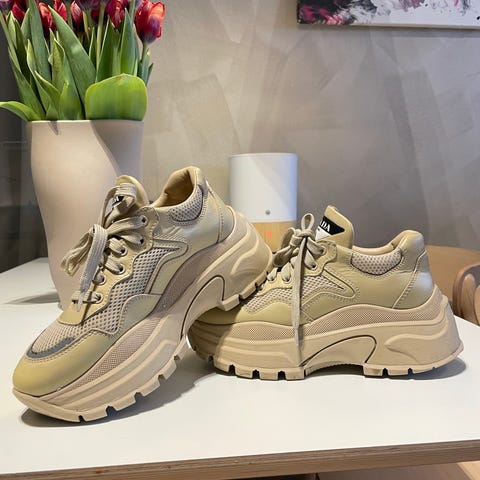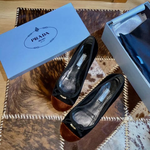 Sirot ja minimalistiset Pradan sandaalit. Kaunis ruskea väri joka sopii asuun kuin asuun. Mokka/nahka. Koko 35,5 (n 22,5). Mukavat jalassa pienen kantakoron ansiosta. Ovh 610.