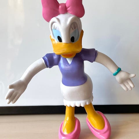 Iines Ankka sorminukke on muovia. Se on n. 5 cm korkea. Sen voi hakea tai voin lähettää.