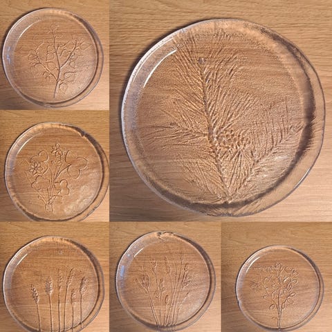2 kappaletta Humppilan lasin riikinkukko- kuviollisia lasilautasia. Ehjät ja siistit. Halkaisija n.26 cm.