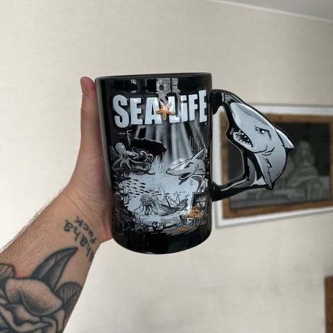 Sinivalkoinen delfiini kuppi, korkeus 10 cm, halkaisija 6,5 cm